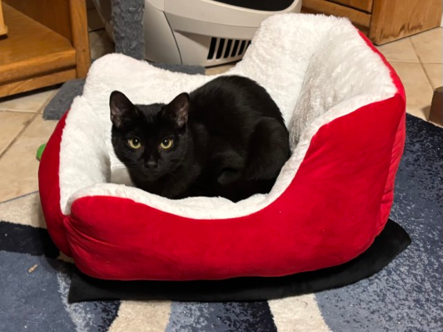 I spend my days romping around with my siblings—El Verde, Rojo, Azule, and Naranja—chasing tails and dreaming up daring adventures. I’m great with the litter box, not picky at mealtimes, and I clean up nicely with my glossy black coat that shines like midnight velvet.