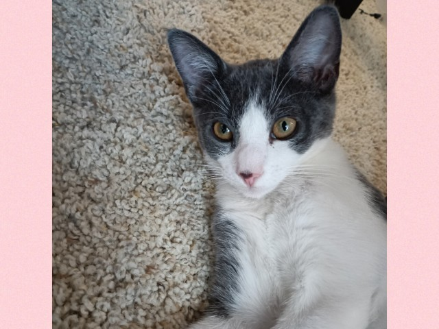 Hi there! My name is Aurelie, and I’m a dainty little kitten with silky, soft fur that’s a mix of snowy white and dreamy Russian blue. I may be just a tiny ball of fluff, but I’ve already had quite the adventure—my very pregnant feral mom was rescued from the streets by a kind emergency vet tech. We were a bit under the weather when we arrived at Dream Animal Rescue, but now we’re happy, healthy, and ready for forever homes!