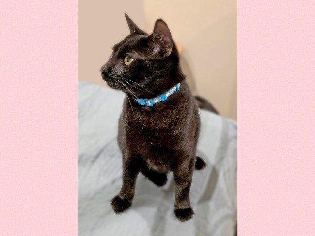 I’m a perfect mix of mellow and playful. I adore toy mice, enjoy scaling cat trees like a pro, and I love hanging out with my sister- Naranja or Nara for short. We’re quite the crew! While I might come off as a bit reserved at first, don’t be fooled—underneath this confident panther exterior is a kitten who thrives on gentle attention and cozy companionship.