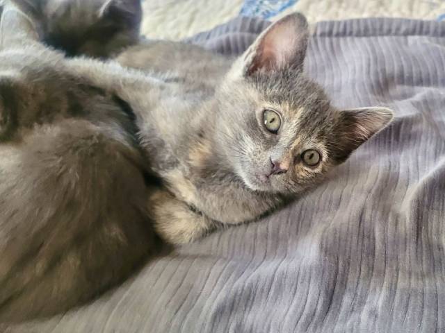 Meet Malia Gray. She was born in a litter of 7 kittens. She is super gentle, cuddly and sweet. She loves to play with all her siblings. She can get along great with other cats and can get along with dogs after a slow intro. Malia is affectionate and playful. Available for pre-adoption she can go home once she is fixed around the beginning of January. Apply to meet her today.